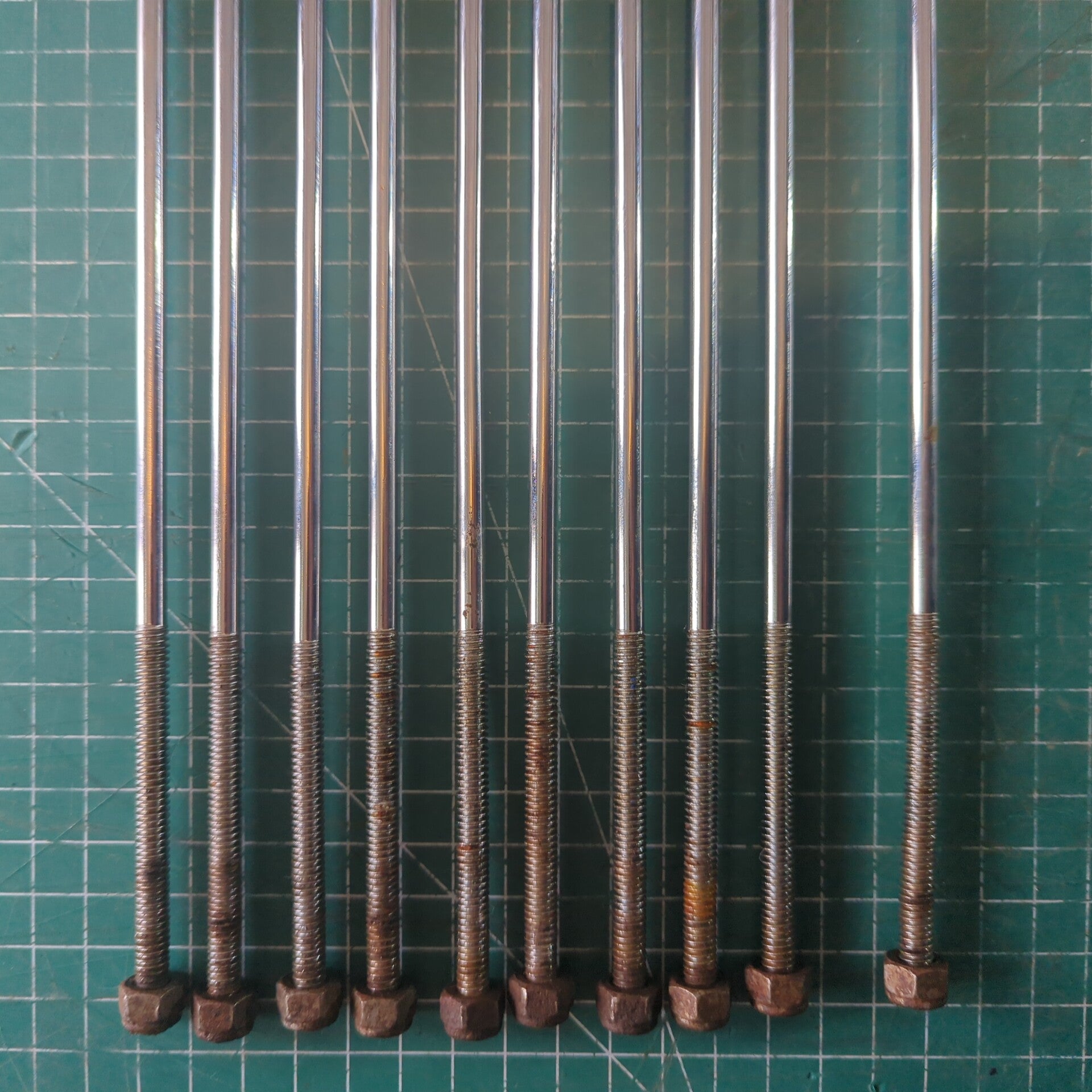 Used Tension rod for 64cm long for a 60cm shelled Surdo. they have various blemishes and the nuts/threads are a bit rusty but they do all work.