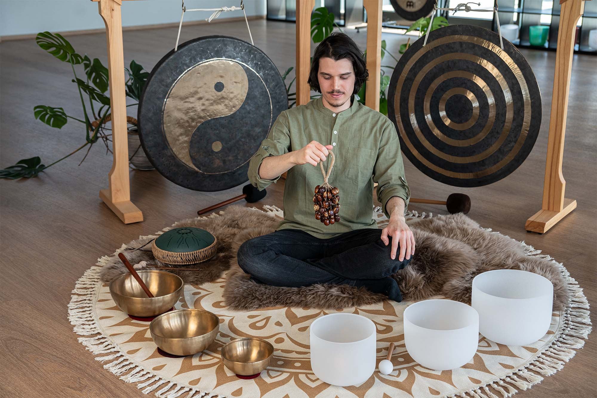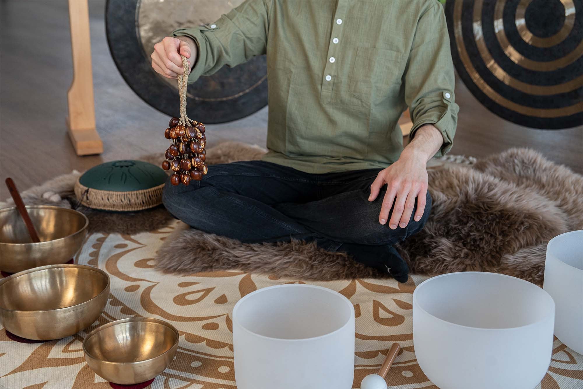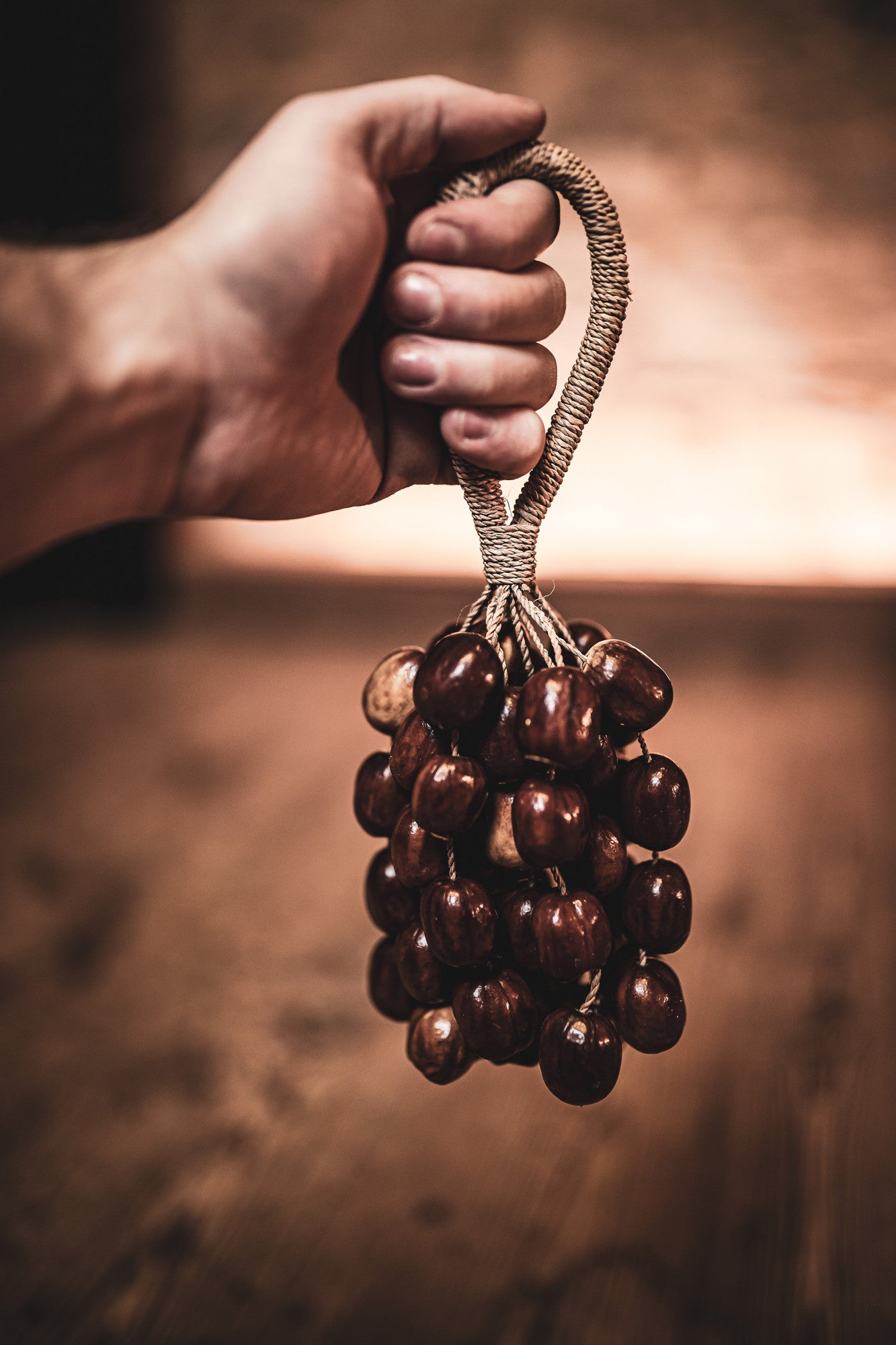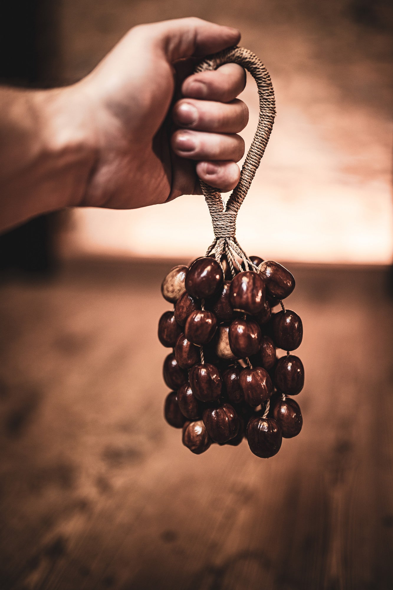 Pala seed nutshells, attached to a wrist strap, create a unique, versatile instrument.