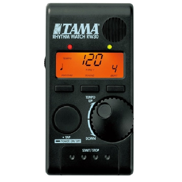 TAMA's Rhythm Watch Mini "RW30"is a brand new, compact version of our renowned Rhythm Watch. With its reduced size and weight, it is easy to bring along wherever it is needed. It also features a handy clip on the back of the body which can be easily attached to various surfaces, such as a music stand, hi hat stand, etc.