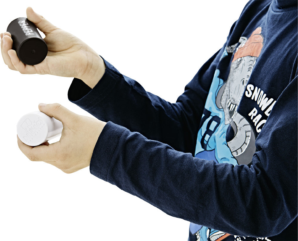 Children can add rhythmic spice to music with the salt and pepper shaker pair from NINO®! These shakers come in a set of two with different-sounding fillings and a durable plastic shell. Shakers are great fun at home or in the classroom.