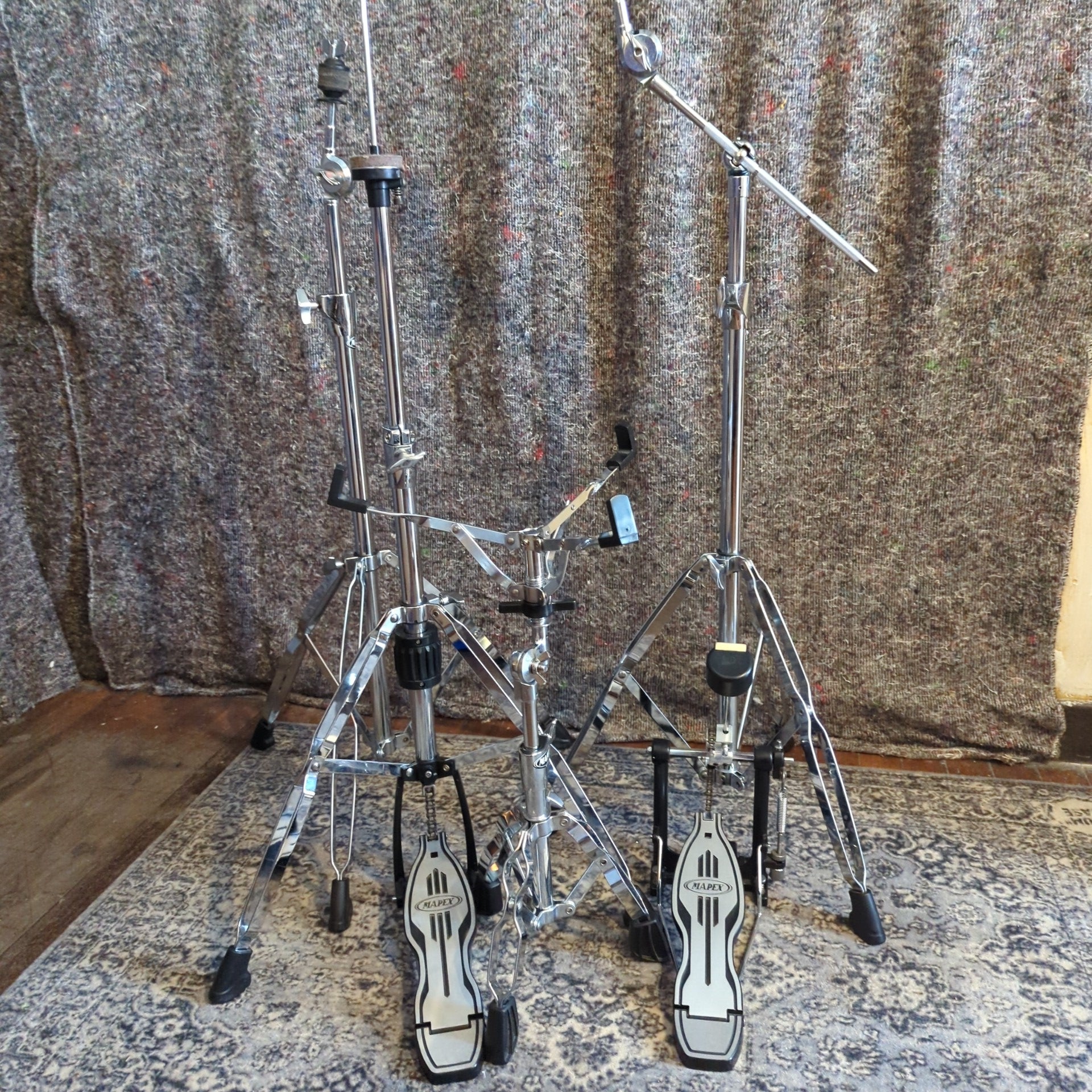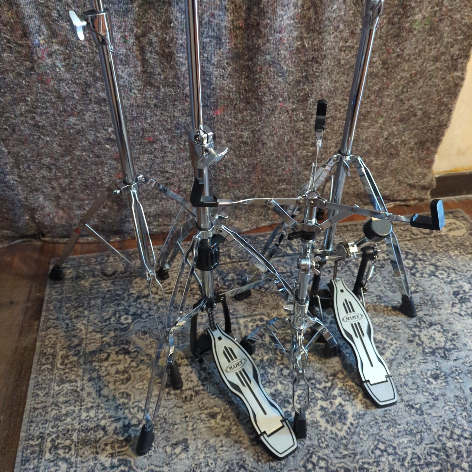 Mapex Hardware Pack. All used stands with individual listings you can look up if you want more details. Everything is in really nice condition, the only issue is theres a bit of spotty blemishes on the chrome