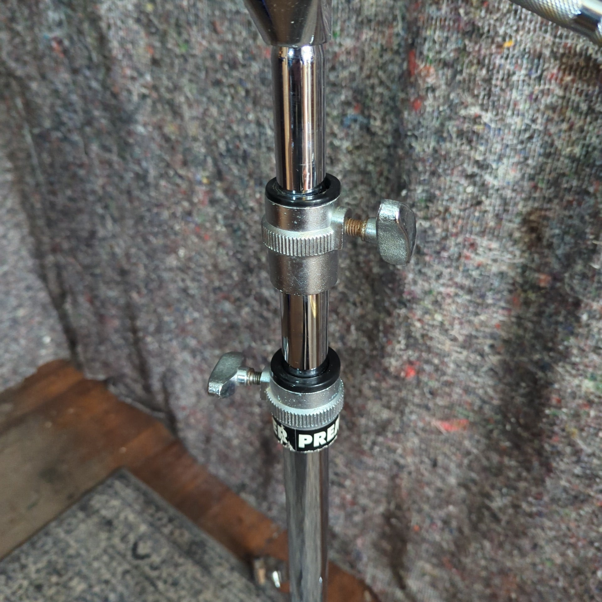 90s premier double braced boom cymbal stand. Solid stand with a bit of rust around the legs and the boom arm.