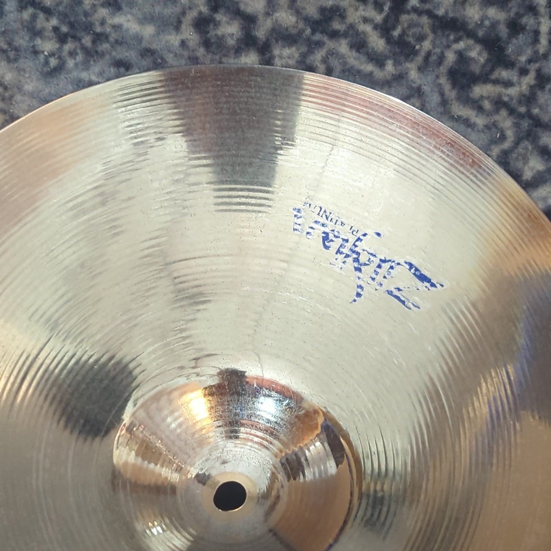 Really nice 90s Zildjian A Platinum New Beats. Like a slightly brighter A Custom with a silvery plating. A bit of keyholing to the top hat.