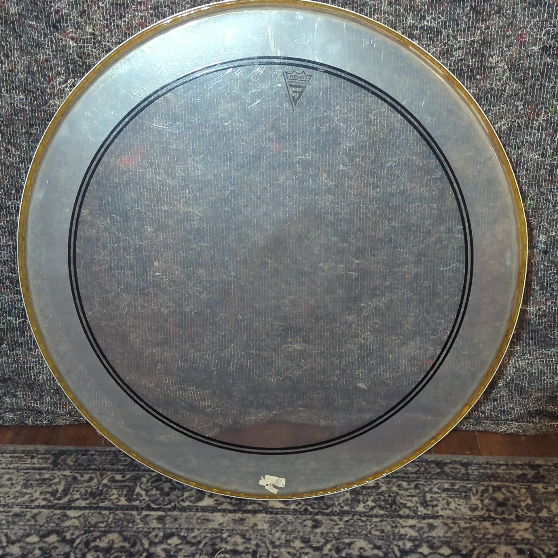Used Remo 22" drum head. Scuffed and an older head but not too bad.