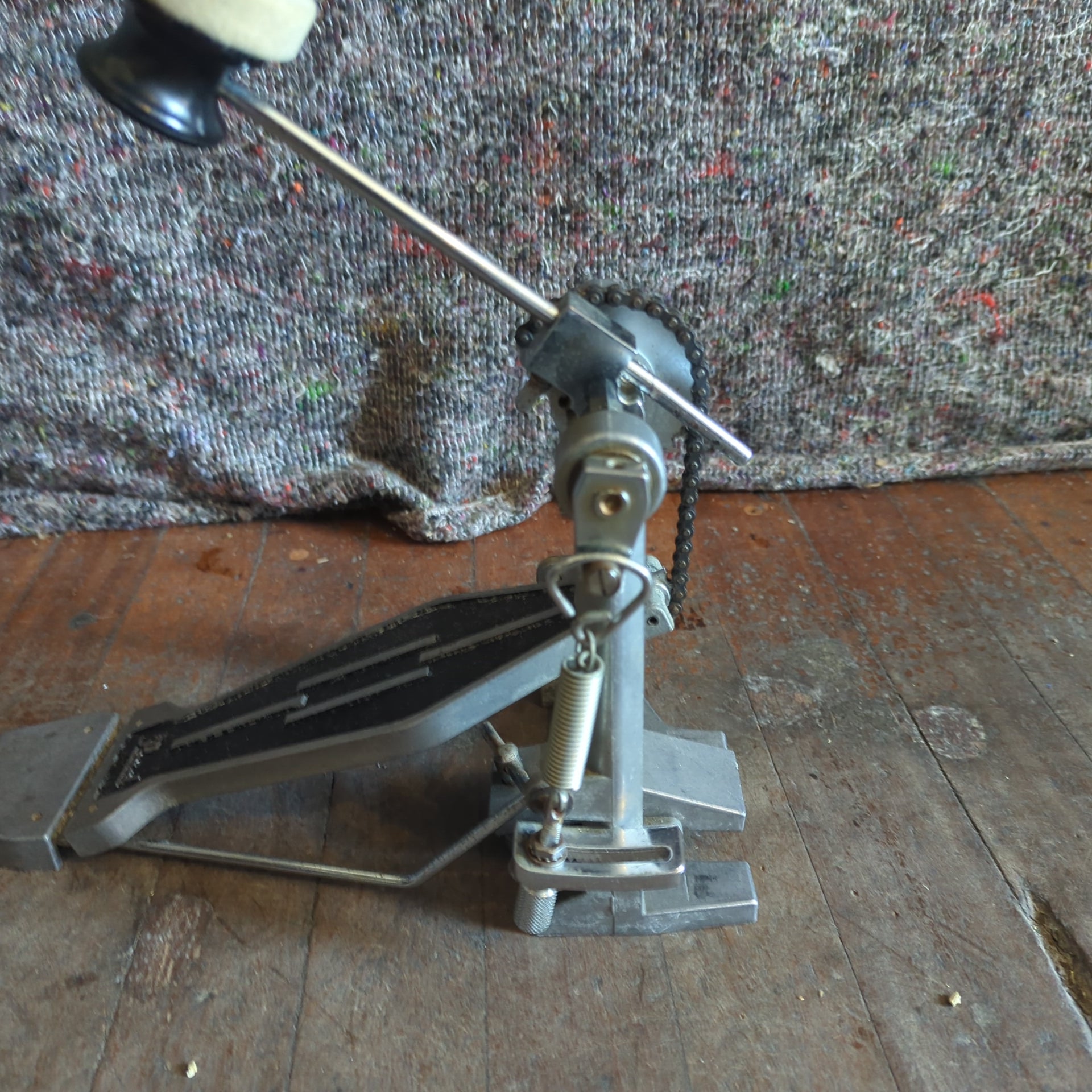 Really nice vintage Pearl bass drum pedal with a nifty beater angle adfustment mechanism.