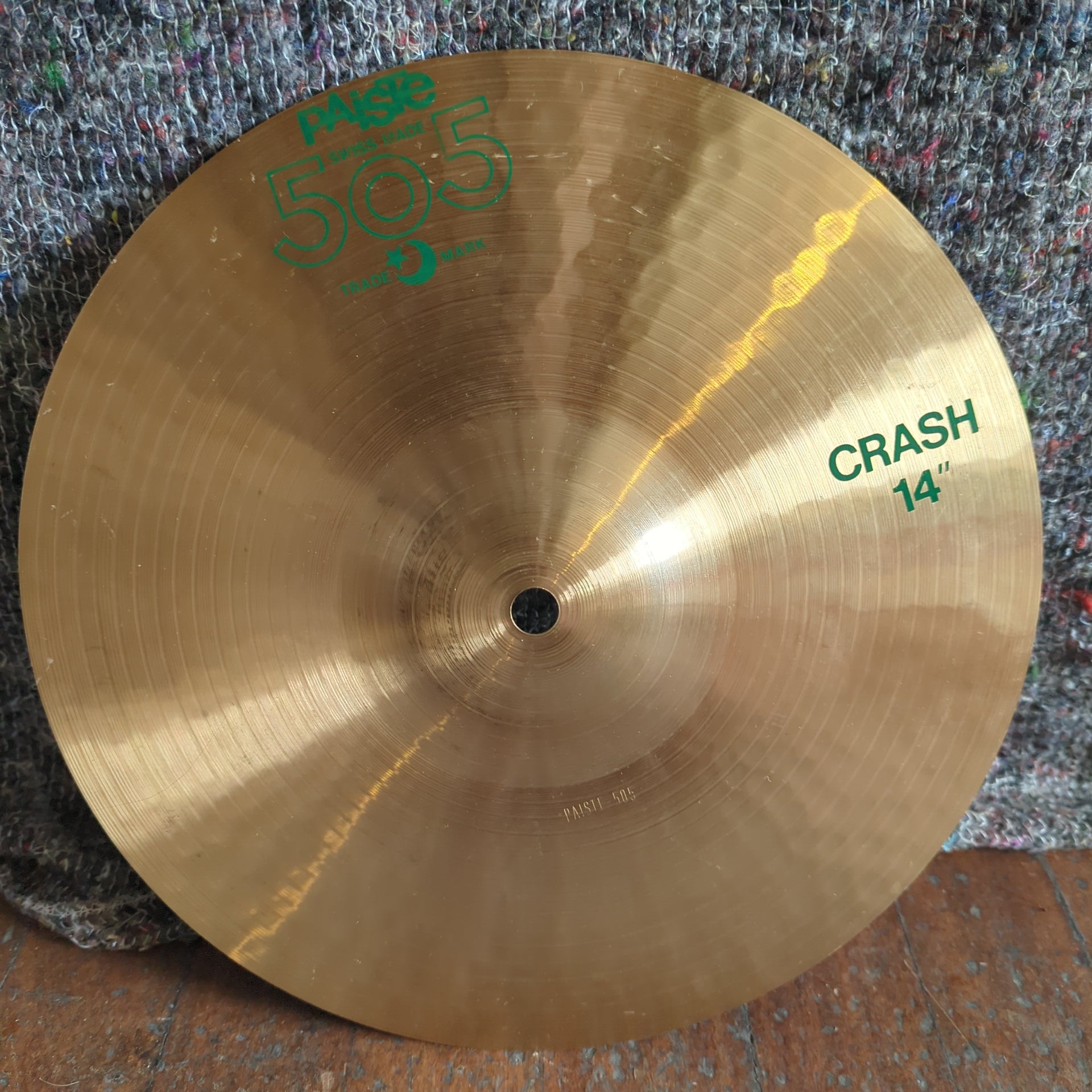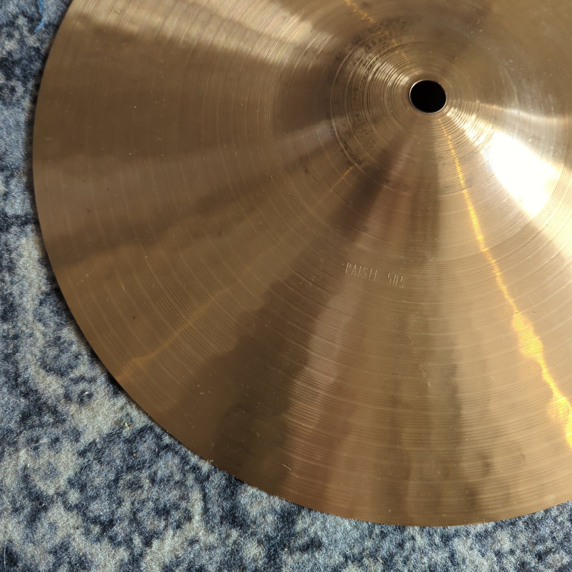 Used Paiste 14" 505 cut down to 12" in size.